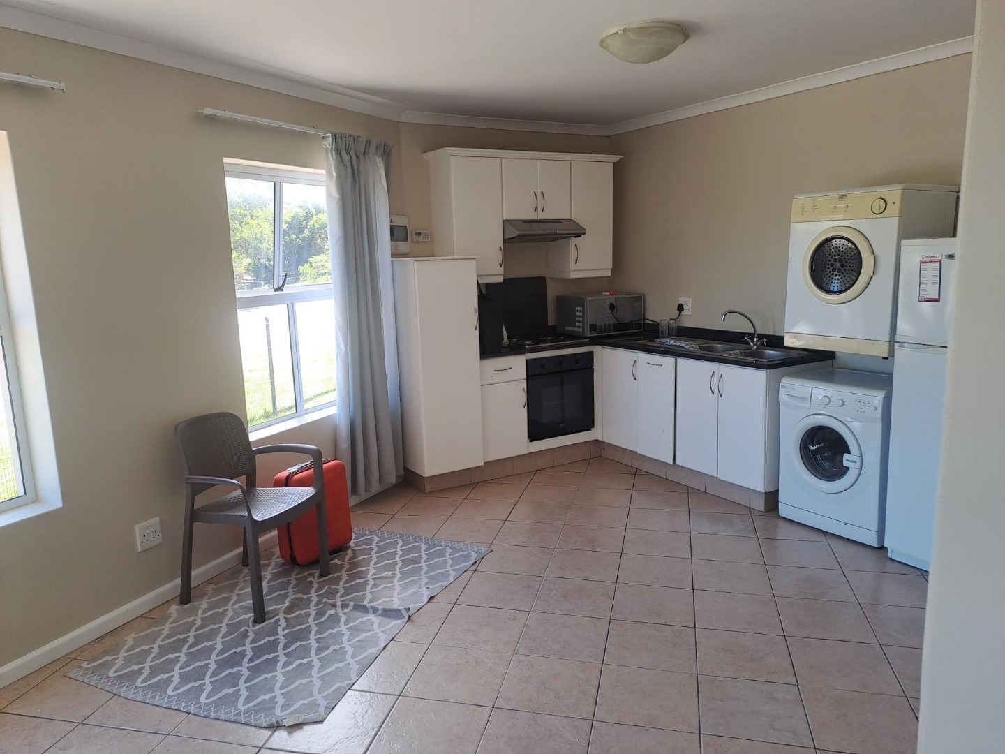 Unit comes with a fridge, stove, washing machine, tumble dryer