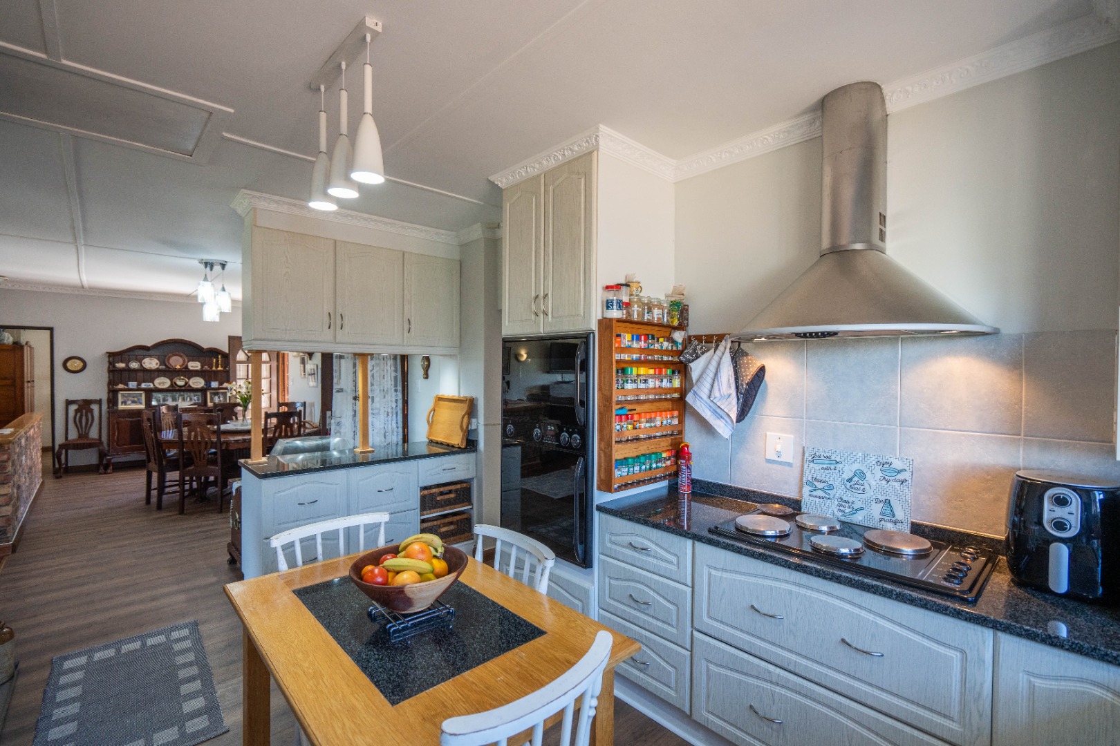 - Open plan state of the art kitchen with a sizeable separate laundry/scullery, double oven and stove and extra sink for purified water.